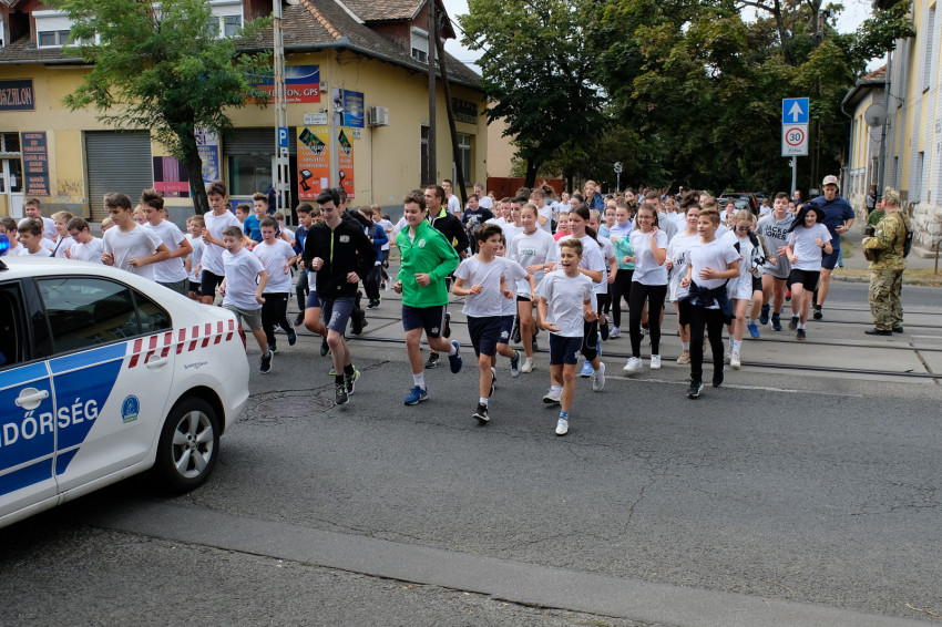 Fél tíz körül megérkeztek a polgárőrök és a rendőrök, hogy a 2021 méteres futásnál a forgalom lezárásával biztosítsák az Ady Endre úton való átjutás lehetőségét az iskola diákjainak és tanárainak, illetve rendőrautóval felvezessék a futókat a szűk kispesti utcákon.