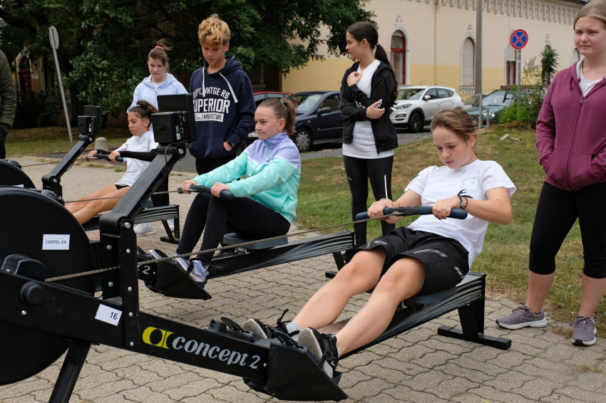 Közben egy rendőrnő és egy tanárnő is befut a célba, látszik, hogy élvezik a diákokkal való közös mozgást. A végzős lány elmondja, hogy is szeretné beépíteni a mozgást a mindennapjaiba. Az osztálytársai általában küzdősportot űznek, táncolnak vagy kézilabdáznak. „Én szeretnék bokszolni, mert az megmozgatja az egész testet, jól ki lehet adni a felgyűlt feszültséget, és önvédelemre is kiváló. Általában azért a fiúk fiús, a lányok lányos sportot űznek. A mostani programokból én is várom a táncot nagyon, de az evezőpadra is kíváncsi vagyok.” Az osztálya már el is kezdte a sorversenyt, így gyorsan félbeszakítjuk a beszélgetést.