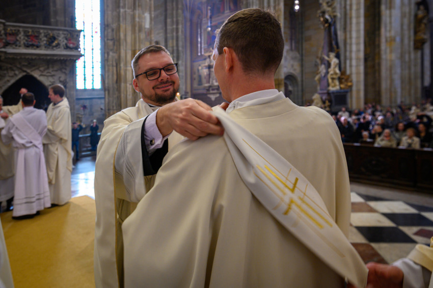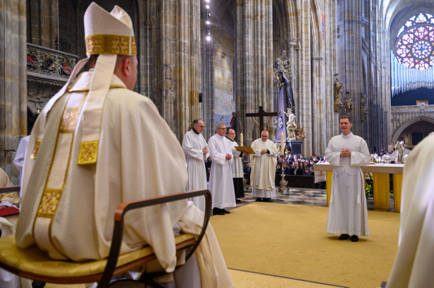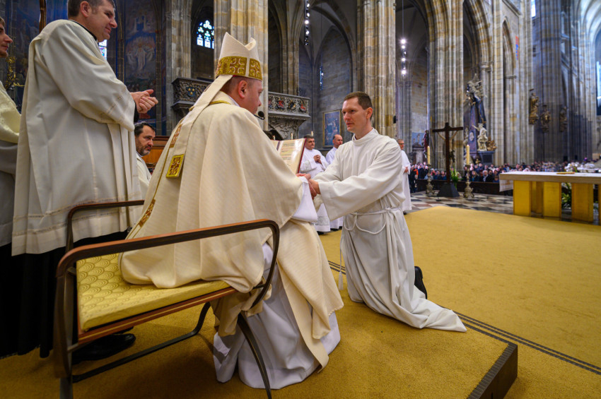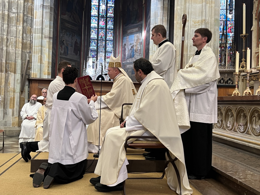 A hároméves formáció végeztével közös lelkigyakorlaton készültek a jelöltek arra, hogy a papi rend legalsó fokozatára szenteljék őket. A szombati szentmise előtt a szentelésre készülők a cseh egyház szívében, a Szent Vencel-kápolnában a szentelő püspök, Zdenek Wasserbauer előtt tették le esküiket, melyeket az oltáron írtak alá.