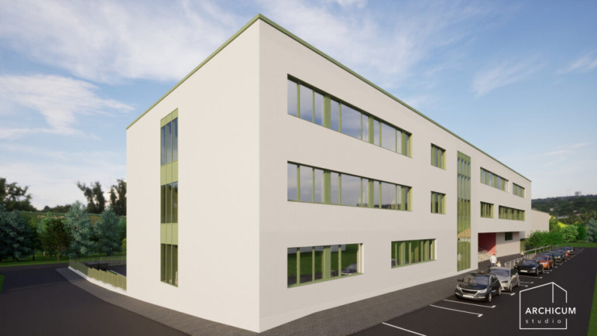 A négyszintes, 16 osztályos általános iskola modern vonalakat követő, visszafogott, a városképbe illeszkedő épület lesz.