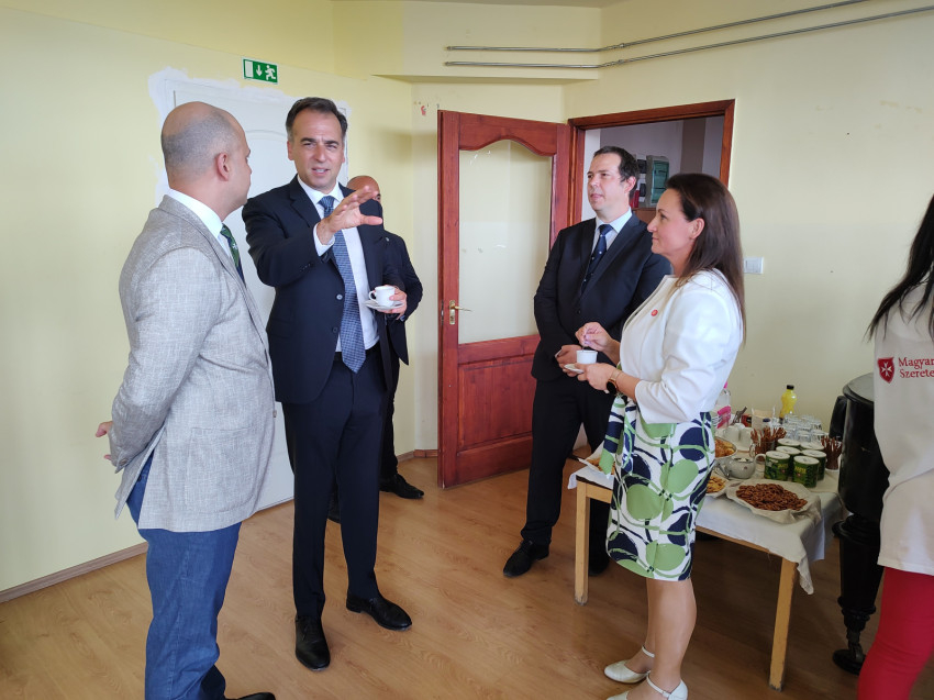 Az amerikai nagykövetet Solymári Dániel, a Magyar Máltai Szeretetszolgálat nemzetközi kapcsolatokért felelős vezetője és Preininger-Horváth Edina, az MMSZ Közép-Dunántúli Régiójának regionális ügyvezetője köszöntötte.