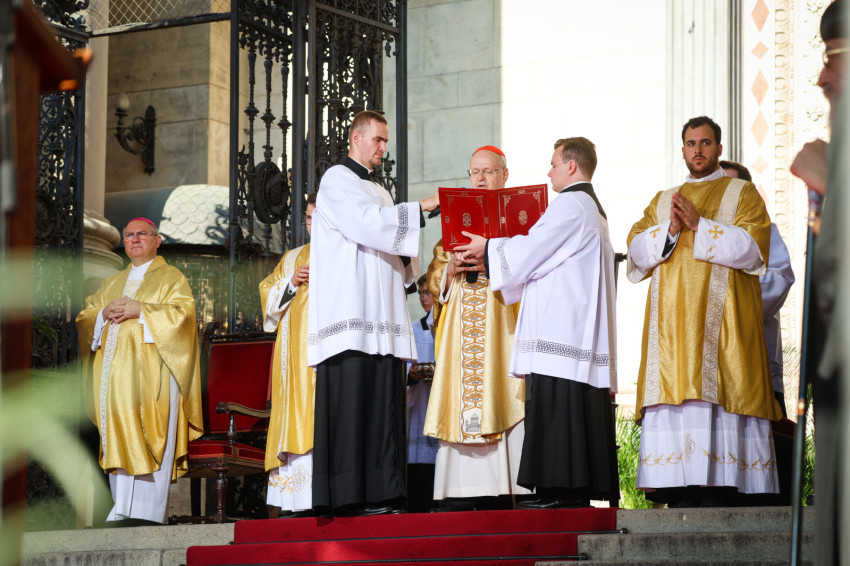 A máriapócsi Családvár zarándokházból indult az asszisztencia az ország minden tájáról érkező papokkal, diakónusokkal, és az ukrán bazilita atyákkal, valamint Kocsis Fülöp hajdúdorogi érsek-metropolitával, Szocska Ábel nyíregyházi, illetve Orosz Atanáz miskolci főpásztorokkal. Az oltár körüli- és a kántori szolgálatot a jelenlegi és a leendő kispapok látták el.
