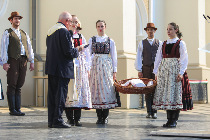 A zászlófelvonást követően a Somogy Táncegyüttes és a Somogy Zenekar műsorát tekinthették meg a jelenlévők, majd Szita Károly, Kaposvár polgármestere mondta el ünnepi beszédét, szavait követően a megyéspüspök megáldotta az új kenyeret.