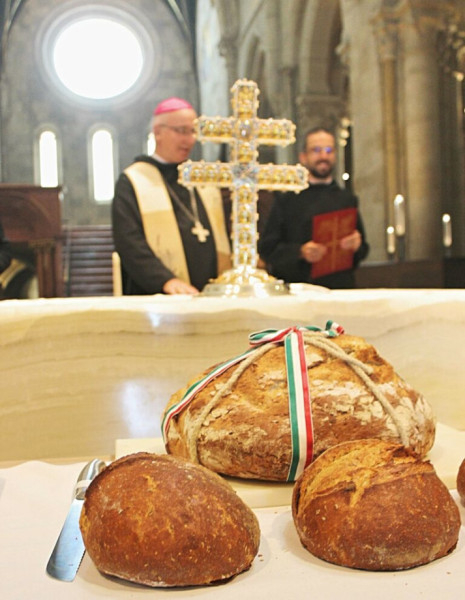 Az új kenyeret Hortobágyi Cirill áldotta meg. „Előttünk e kosárban itt van – valóságosan és jelképesen –, ami az életünkhöz szükséges, a mindennapi kenyér, amiért hálát adunk most Istennek, az élet ajándékozójának, és amelyet megáldunk. Az áldás hálaadás Istennek; munkánknak és erőfeszítésünknek is szól, de felszólítás is egyben, hogy azokra is gondoljunk, akik mindezt nélkülözik, és gondoskodjunk róluk. Imádságunk különösen aktuális ma, amikor a háború és az időjárás okozta nehézségekkel szembesülünk” – fogalmazott a főpát.