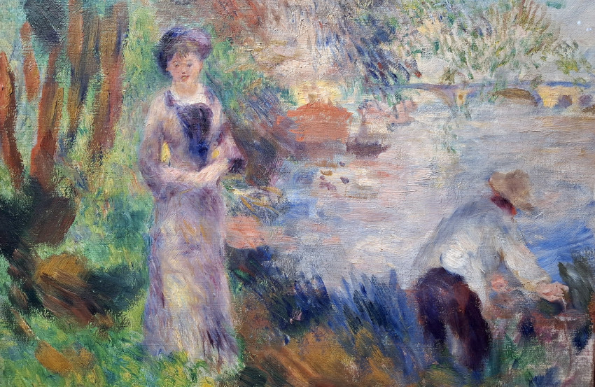 S akkor egyszer csak elérkezünk Renoir festményeihez. Egyszerűen lenyűgözőek. Színeik, mint a szivárvány, varázslatosak, gyöngyházfényűek. A mester ragyogó alkotásai senki másnak a műveivel nem téveszthetők össze. Nem csoda, hogy a műgyűjtő házaspár is beleszeretett a képeibe. Az olvasó nő című festményről csak úgy sugárzik az életöröm. Egyetlen sötét tónus vagy szín sincs a képen. Látszik, hogy Renoir örömében festett, a boldogság egyfajta megnyilvánulását láthatta az alkotásban. A kiállításon bemutatott portréi azonban nemcsak színeikkel ragadják meg a nézőt, a festő jellemábrázoló képességéről is tanúságot tesznek. A Lányportré világoskék háttér előtt című képén is leheletfinom színekkel, finom érzékkel festi meg modelljét.