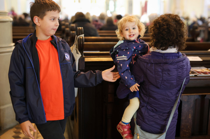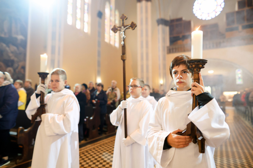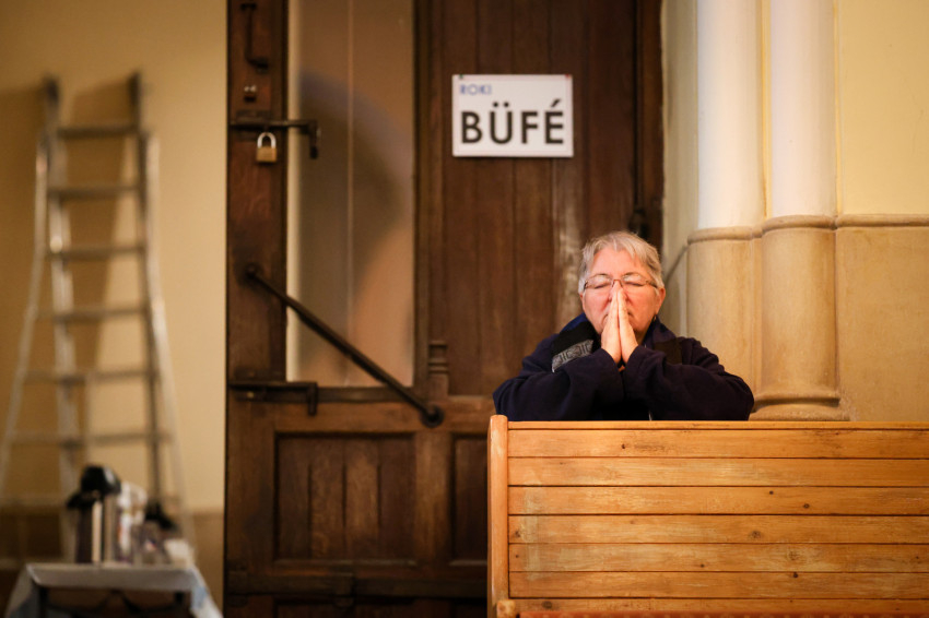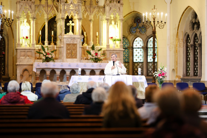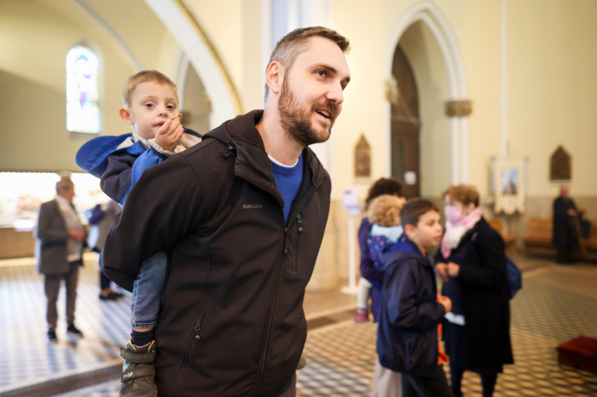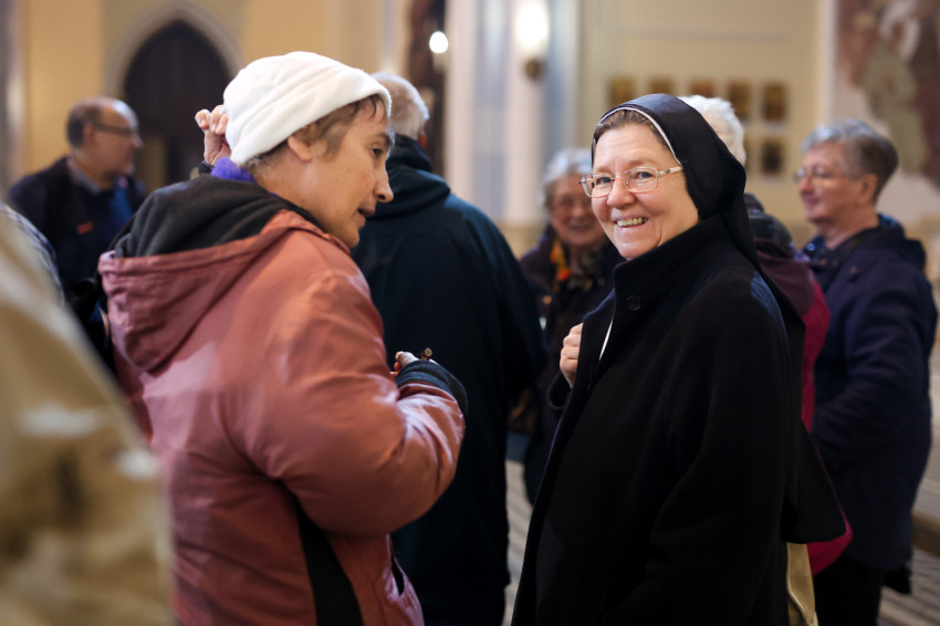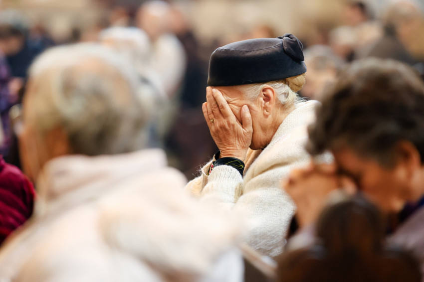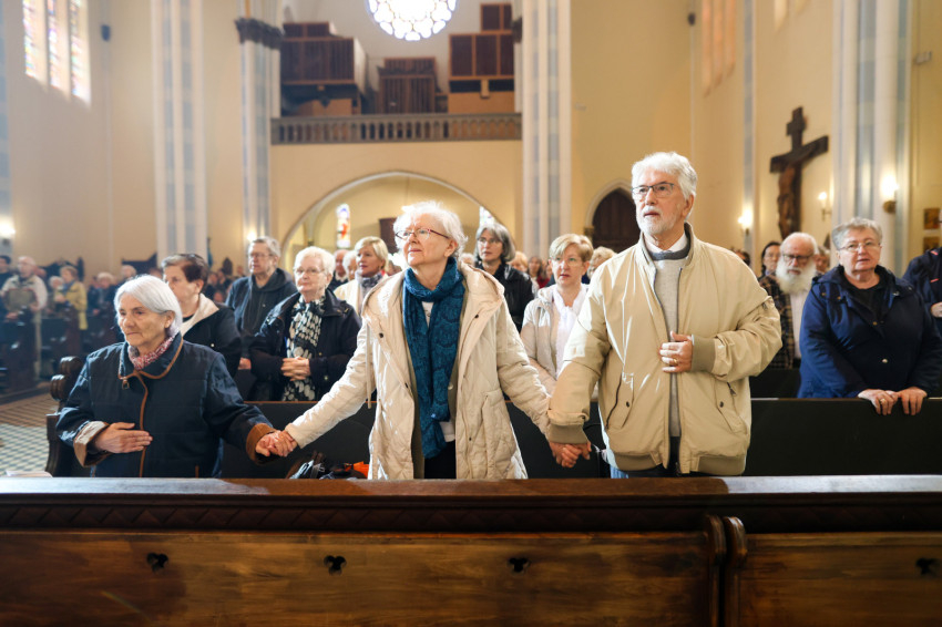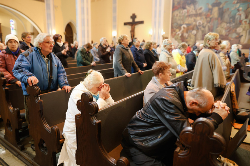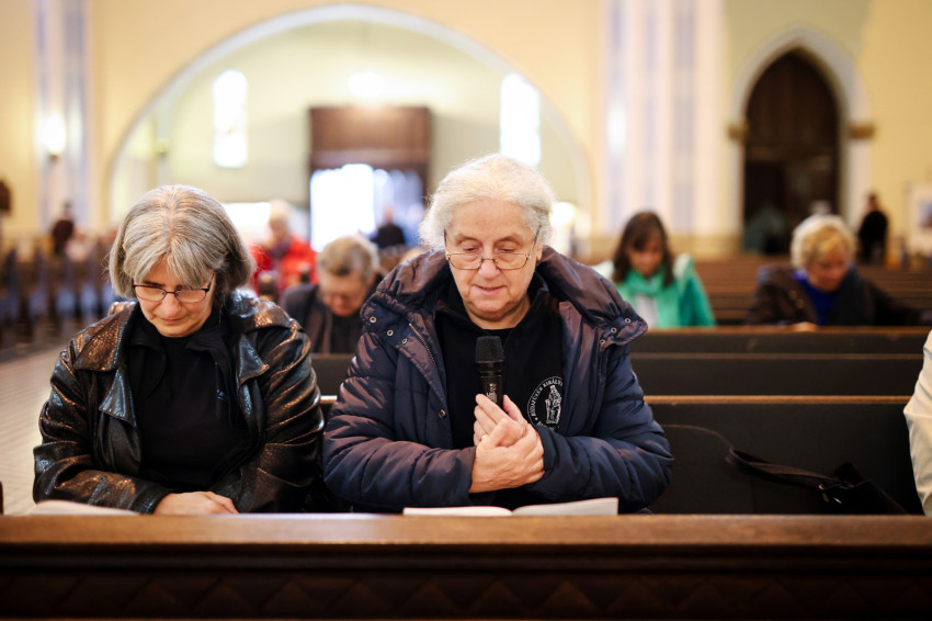 Az esemény kezdetén a hívők az örvendetes rózsafüzért imádkozták.
