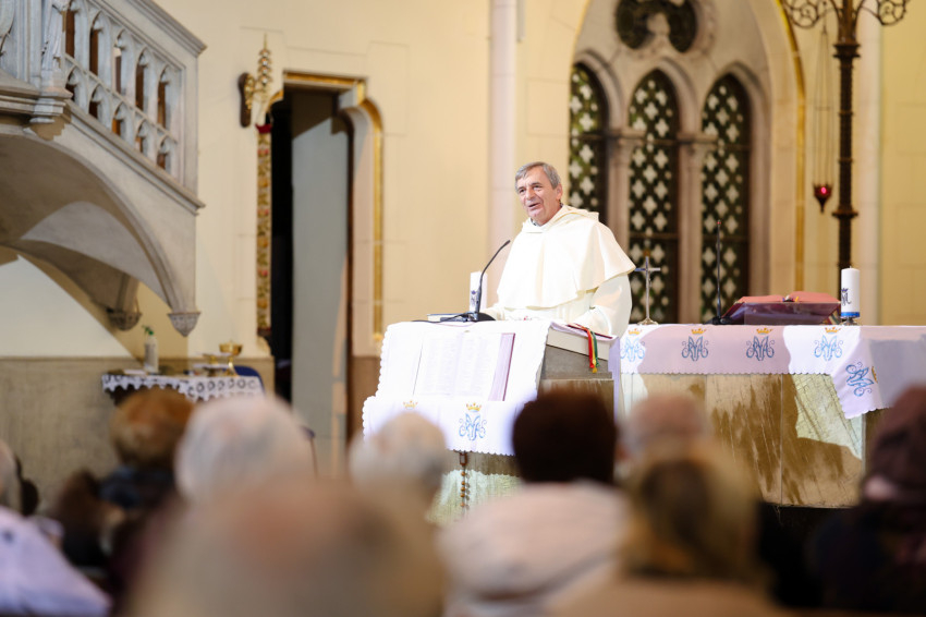 Csodáljuk mint kismamát, aki magasztalja az Istent. Ez a lelkület egész életét kitölti: Mária számára az Isten nem feladat, hanem életközösség. Amikor a legkülönfélébb jelenésekben megjelenik a világon, azt akarja, hogy ez bennünk is egyfajta szemlélet, életközösség legyen. Ez a kereszténységünk csodálatos hivatása – mondta a domonkos szónok. Hozzátette: soha nem tudjuk ezt a hatalmas mondanivalót kimeríteni. Lépésről lépésre kell folyamatosan haladnunk, Isten kegyelmével. A rózsafüzér rendszeres imádsága azért nagyon értékes, mert ebben segíthet bennünket.