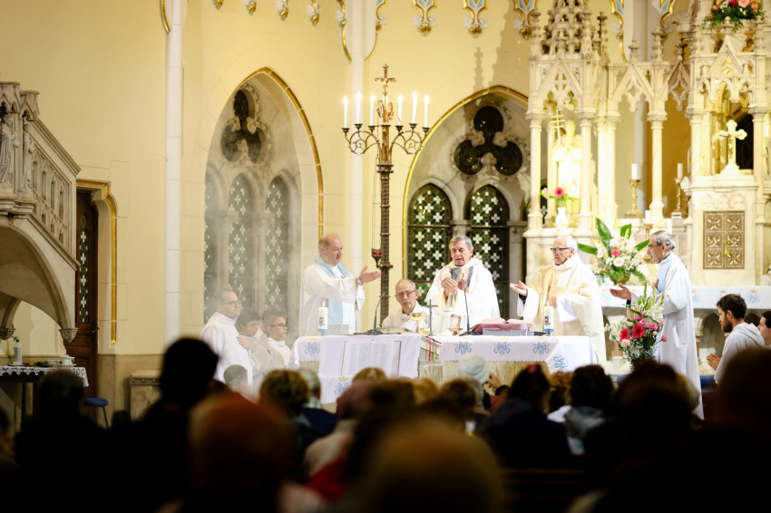 Az előadást követően Mészáros Domonkos koncelebrált búcsúi szentmisét mutatott be. A szertartás végén a két aranymisés pap, Mészáros Domonkos és Nagy Károly megáldották a híveket.