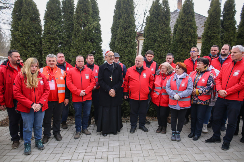 Az udvaron megáldotta a Karitász munkatársait, és Ferenc pápa vasárnapi beszédét idézve az újságíróknak is megköszönte fontos munkájukat, a tájékoztatást.