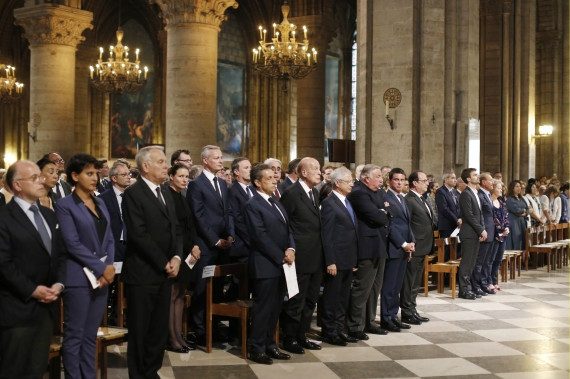 Rendkívül szigorú biztonsági intézkedések keretében zajlott a szertartás, amelyen a francia püspöki konferencia tagjai, a helyi politikai elit legfontosabb képviselői is megjelentek: ott voltak François Hollande jelenlegi, valamint Nicolas Sarkozy és Valéry Giscard d'Estaing korábbi államfők, Manuel Valls kormányfő, Gérard Larcher, a Francia Szenátus elnöke, Claude Bartolone, a Nemzetgyűlés elnöke.