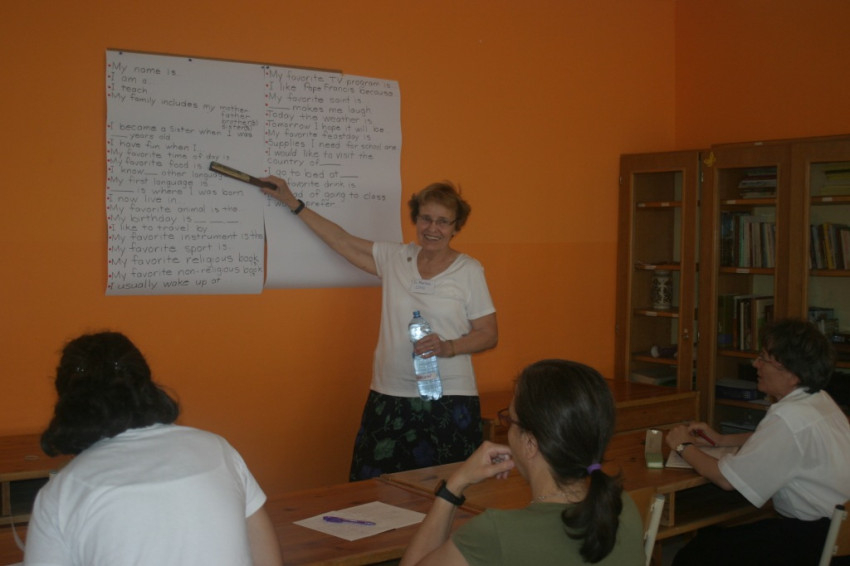 A Boldogasszony Iskolanővérek meghívására négy amerikai iskolanővér érkezett hazánkba, hogy angol nyelvre oktassa az érdeklődő magyar szerzetesnővéreket a rendeken belüli gördülékenyebb kommunikáció elősegítésének céljából. Lucille Dehen Mankatóból (Minnesota), Deborah Cerullo Providence-ből (Rhode Island), Joan DiProspere St. Louisból (Missouri) és Marlene Panko Los Angelesből (California) indultak útnak.