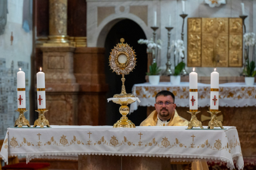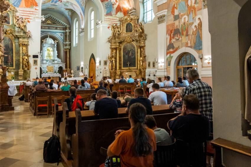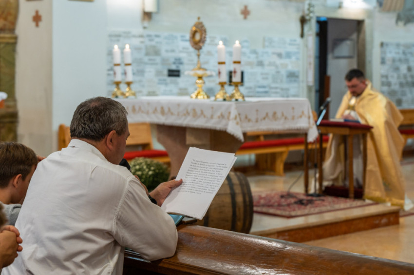 A zarándoklat zárásaként köszönetet mondtak a résztvevők a zarándoklat kegyelmi ajándékaiért és imádkoztak Kovács József püspöki titkár vezetésével a bazilikában megtartott szentségimádáson.