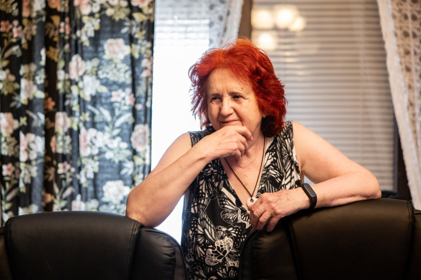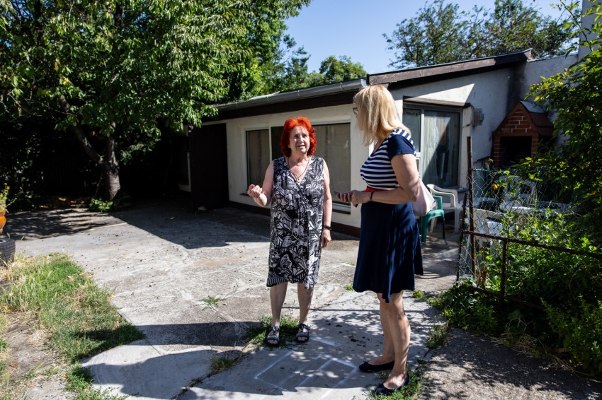 Székesfehérvárra utazunk. Földszintes házak sorakoznak a csendes utcában, ahol Veronika a férjével, Enyedi Bélával él. A kapu közelében egy kis paletta jelzi csupán, hogy jó helyen járunk.
