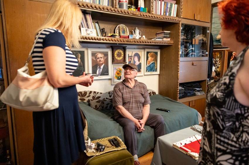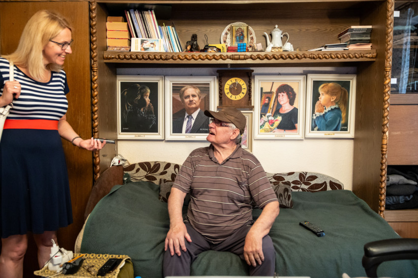 Sorra mutatja a különböző helyiségekben elhelyezett képeit, majd betérünk az utcafronton lévő szobába, ahol a férje vár minket. Felkészülten pontosítja a dátumokat és az adatokat, amelyek eddig elhangzottak, hiszen ő lett Veronika menedzsere, és mondhatni, történetírója.