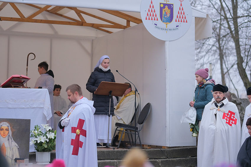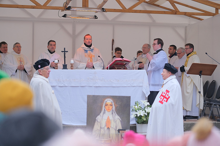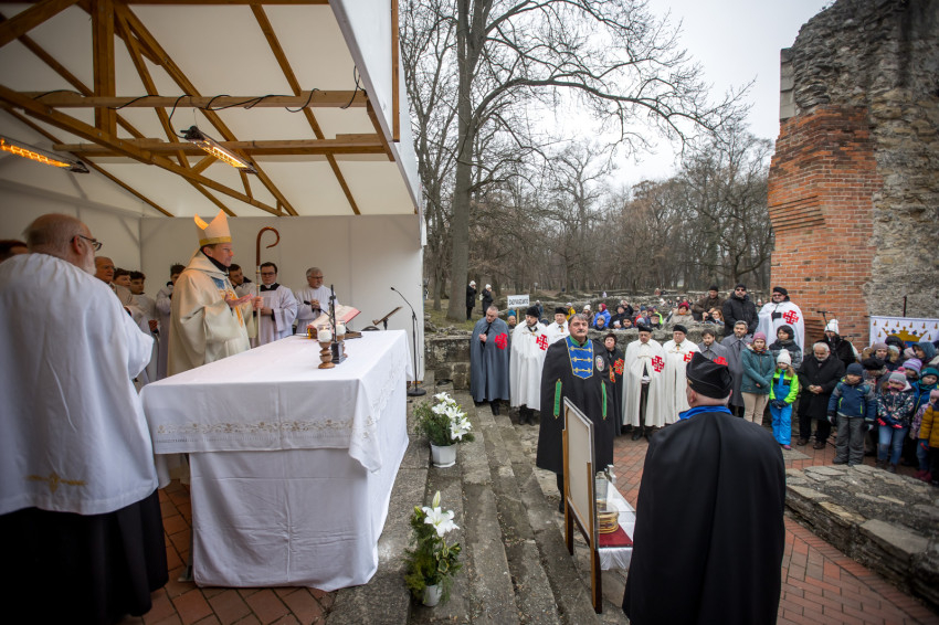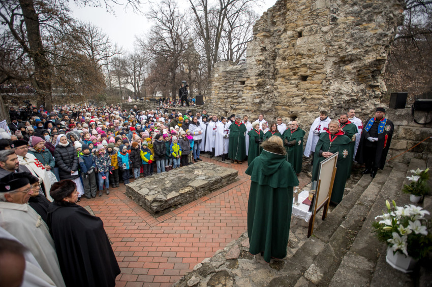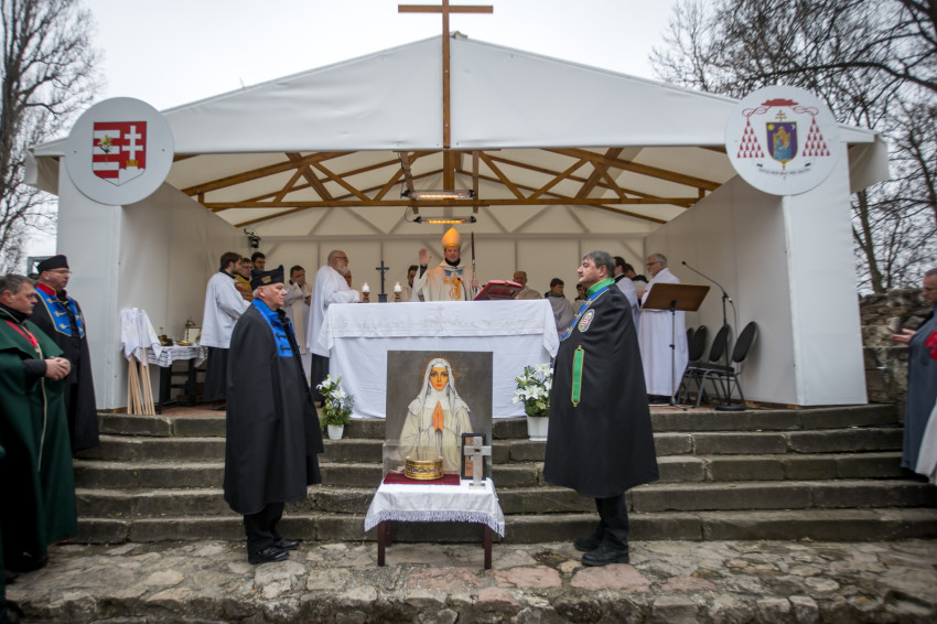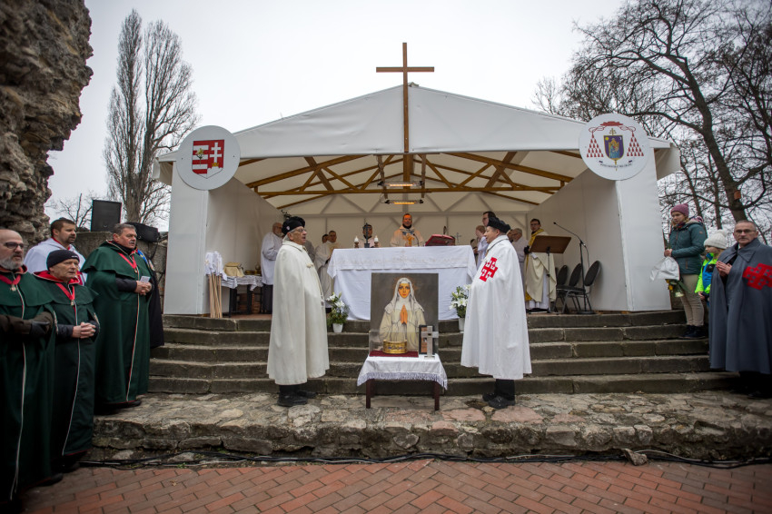 A domonkos kolostor romjainál felállított szabadtéri oltárnál tartott liturgián nagy számban vettek részt hívek, köztük a Pannonia Sacra Katolikus Általános Iskola oktatói, diákjai és szüleik, valamint megjelentek a lovagrendek képviselői is, hogy a szent királylány közbenjárását kérjék a magyar nemzetért.