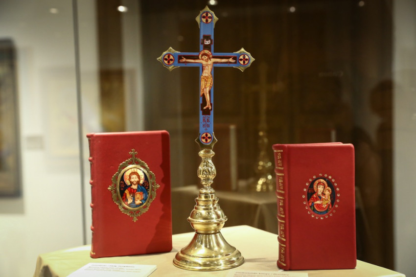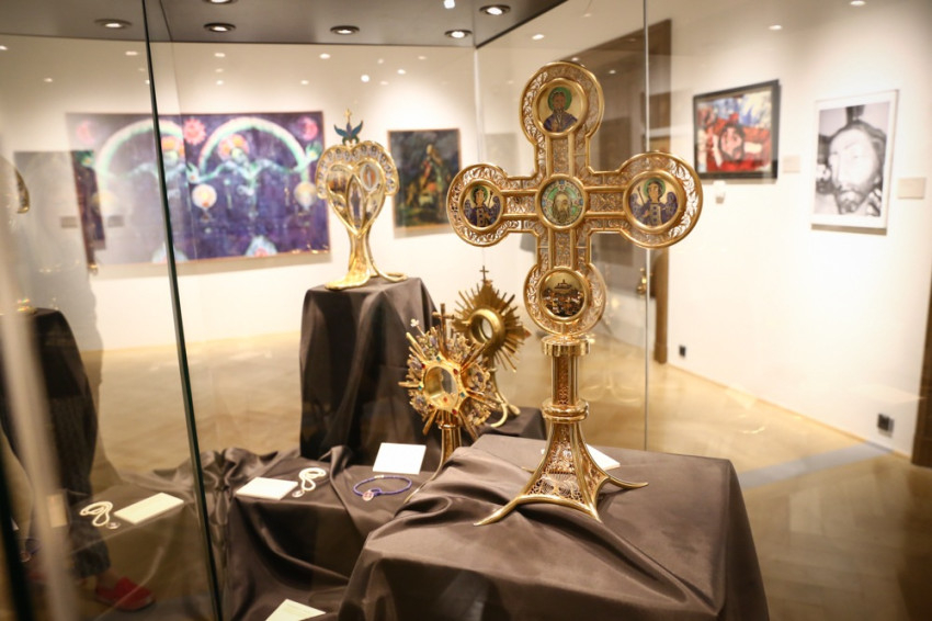 A tárlaton közel száz tárgyat mutatnak be, melyek csoportja három nagyobb egységre bontható. A liturgikus tárgyak – papi öltözetek, úrasztali terítők, egyházművészeti tárgyak – között ikonfestészeti alkotásokat is láthatnak az érdeklődők, míg a második csoportba keresztény tematikájú szakrális képzőművészeti alkotások, festmények, grafikák, zománcok tartoznak. A harmadik egységet végül a nem keresztény tematikájú, kis- és nagyművészeti alkotások teszik ki.