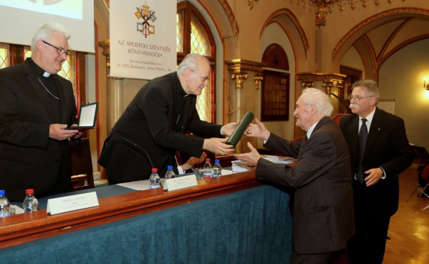 Az irodalmi kategória díját a születésnapját előző nap ünneplő Kányádi Sándor vehette át Erdő Péter bíborostól és Spányi Antal püspöktől.