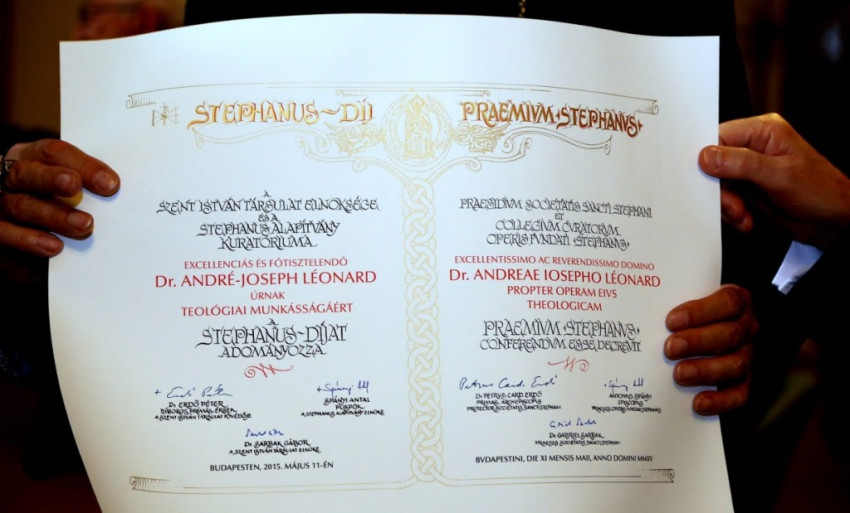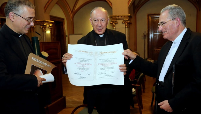 Erdő Péter bíboros és Spányi Antal püspök ezt követően elsőként André-Joseph Léonard érseknek adta át a Stephanus-díjat, akit Pápai Lajos győri megyéspüspök méltatott.