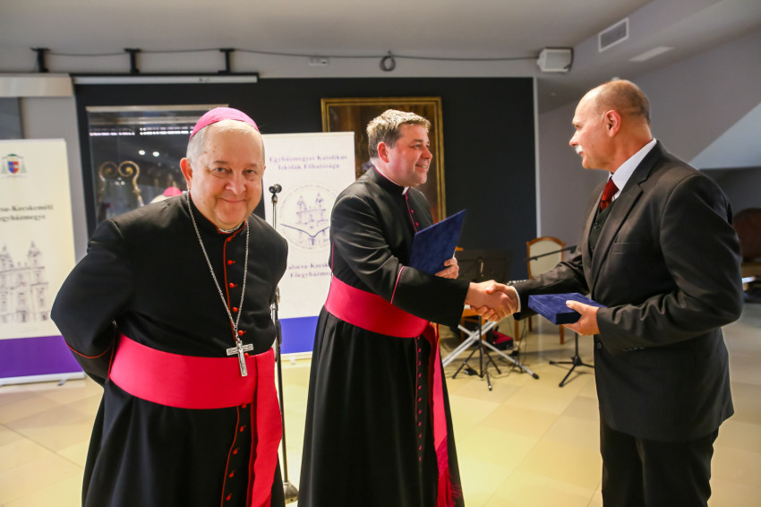 A főegyházmegye területén működő szerzetesi fenntartású katolikus tanintézmények pedagógusai közül Talmácsi József, a kecskeméti Piarista Gimnázium, Kollégium, Általános Iskola és Óvoda gimnáziumi tanára kapta az elismerést, munkáját Mikulás Domonkos intézményvezető méltatta.