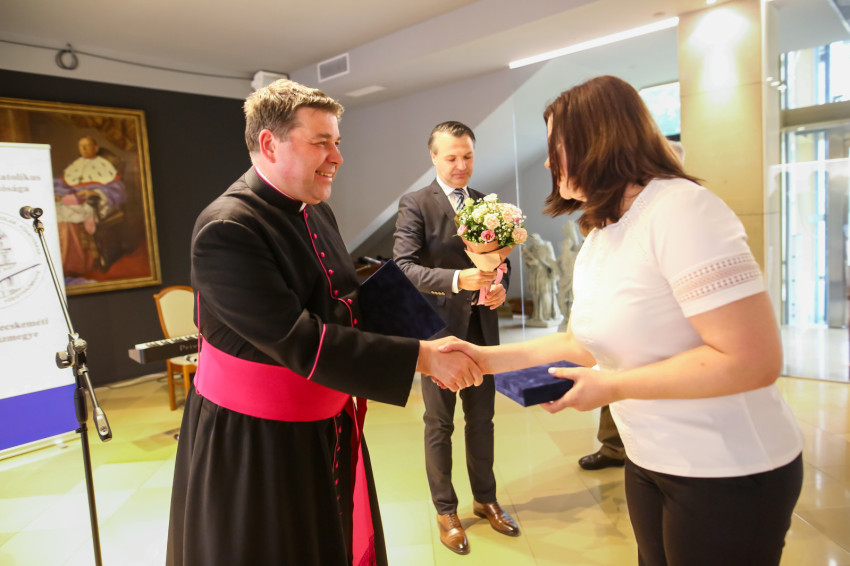 A főegyházmegye fenntartásában működő középfokú katolikus oktatási-nevelési intézmények részéről Pap Andrea, a kiskunhalasi II. Rákóczi Ferenc Katolikus Gimnázium és Technikum tanára vehette át az elismerést. A díjazott munkáját Téglás László igazgató méltatta.