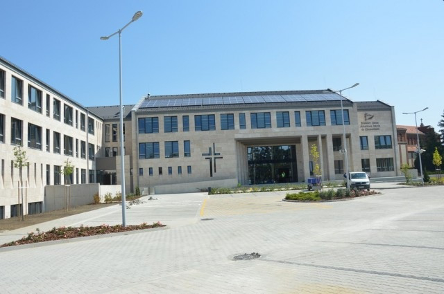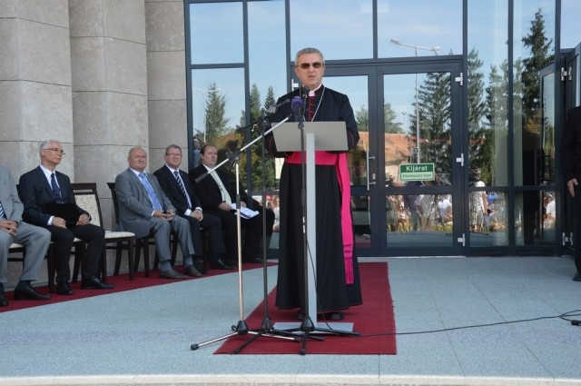 Veres András megyéspüspök köszöntőjében kiemelte: az új épületben nemcsak a keresztény szellemiségű nevelést biztosítják a diákoknak, hanem a korszerű körülmények megteremtik a lehetőségét a mindennapos testnevelésnek is.
