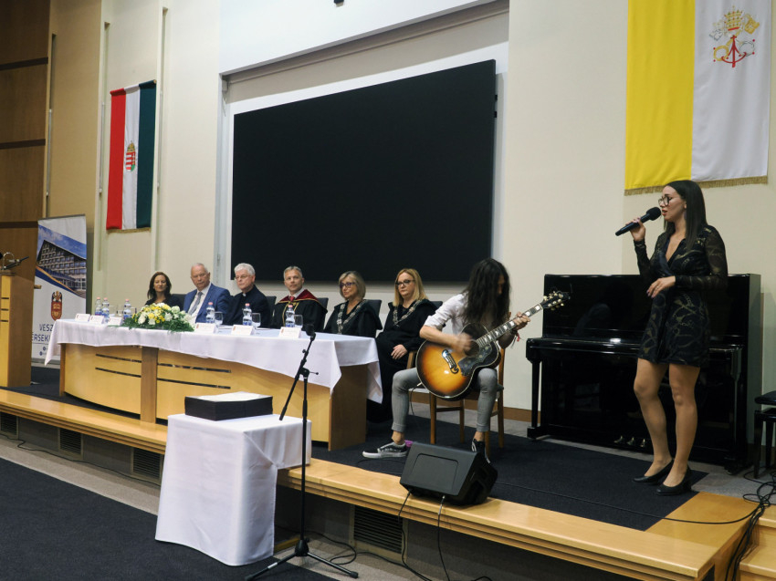 Hegedűs Barbara, Veszprém alpolgármestere a tudás megszerzése és a személyes fejlődés fontosságáról beszélt. Kiemelte, hogy a megszerzett tudás és tapasztalat segít eligazodni a világban, és hogy a végzősök hivatása nem csupán munka, hanem elkötelezettség az emberek testi-lelki jóléte iránt. Hangsúlyozta, hogy a tudás önmagában kevés, ha nem párosul szeretettel és alázattal.