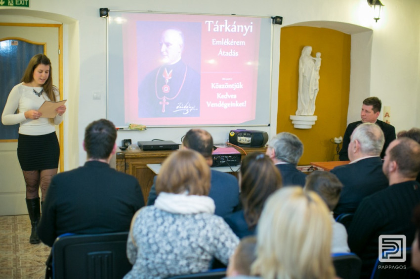 Farkas Réka köszöntötte a jelenlevőket, s méltatta a díj alapítóját, Papp László plébánost: „Bizonyára a Szentlélek sugallatára támadt a díj megalapítására vonatkozó építő javaslata. A hitét példamutató módon élő testvéreknek évente odaítéli – a képviselőtestület javaslatára – e nemes Tárkányi Béla-díjat.”