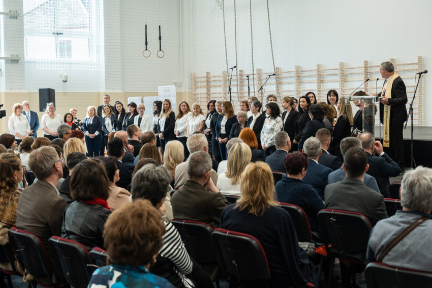 Koósz Roland, a Pécsi Egyházmegyei Hivatal oktatási irodavezetője, aki korábban a paksi katolikus iskola igazgatója volt, köszöntőjében a 33 évesen „krisztusi korba” lépett intézmény elmúlt évtizedekben elért eredményeit méltatta. Mint fogalmazott: ezekben az alapítók hite és bátor akarata, valamint a dolgozók alázata, szakmai tudása és embersége ölt testet.