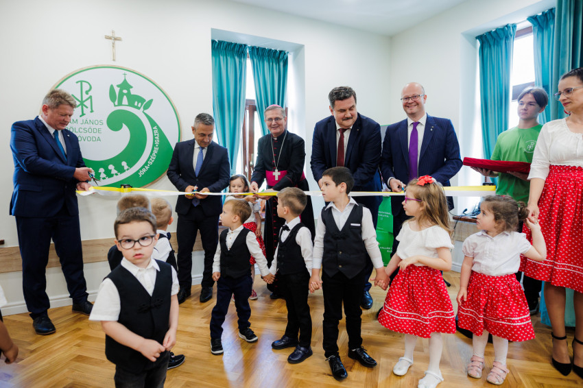A főpásztor elmondta, hogy szeretnének a gyermekeknek mindent megadni, hogy legyen mire emlékezzenek. Visszaemlékezett az intézmény létrejöttére is. Sok évvel ezelőtt a polgármesterrel folytatott megbeszéléseken kiderült, hogy a városnak leginkább egy korszerű öregek otthonára lenne szüksége. Három sikertelen pályázat után azonban a püspökség elállt ettől a tervtől. Ez akkor történt, amikor az egyházmegye a gondviselés évét kezdte meg. „A Gondviselés úgy akarta, hogy amikor nem sikerült az öregek otthonát megvalósítani, akkor lehetőség nyílt a bölcsőde és óvoda támogatására. Ez is Gondviselés!