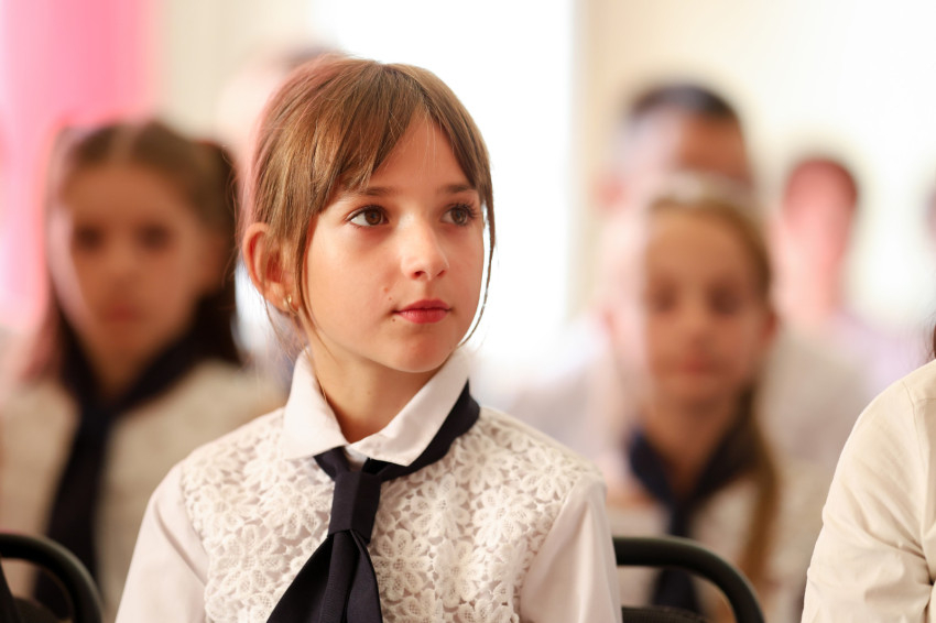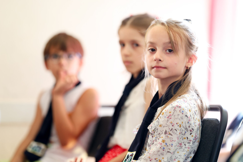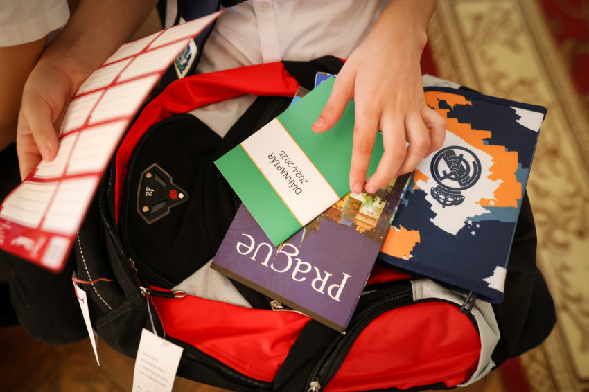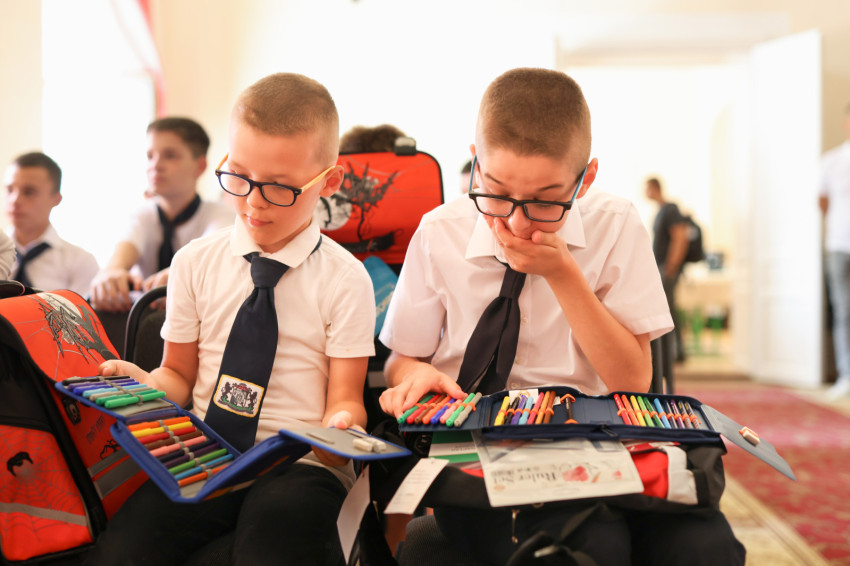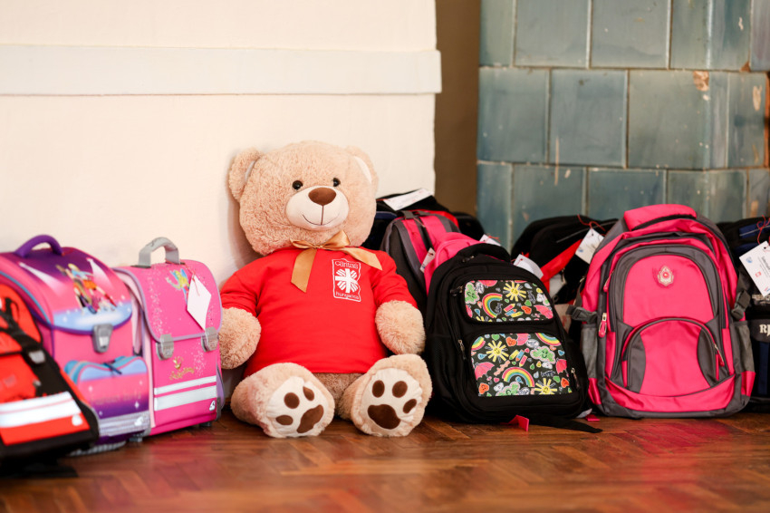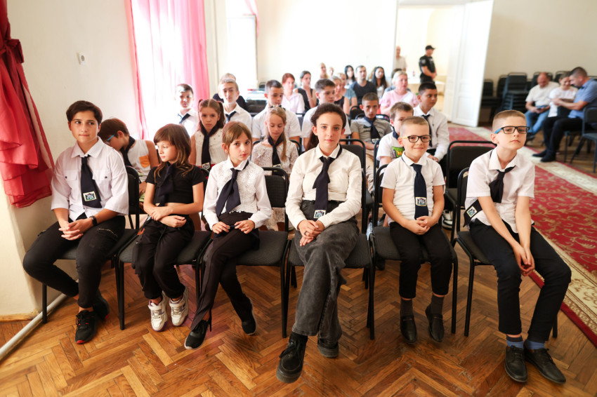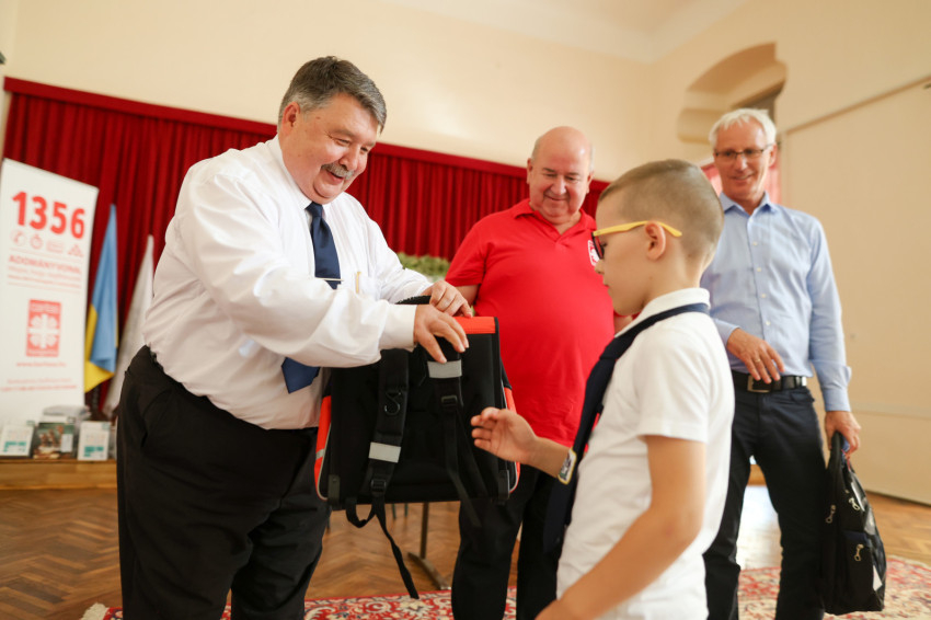 Az első széksorokat töltötték meg azok a gyerekek, akik megkapták a Katolikus Karitász „Legyen öröm az iskolakezdés!” programja keretében hozott táskákat. Mint megtudtuk, mindegyikük nehéz körülmények között él: sokukat egy szülő egyedül neveli, kit a betegség, kit a függőség, kit a háború ragadott el a családból. Ezért a nagyobb testvér kiveszi a részét a család eltartásából, sőt, a felsőbb osztályosok esetében gyakori, hogy azért tanulnak otthonról, mert be kell segíteniük a családi gazdaságban, melyet az apa távollétében – vagy a fronton harcol, elesett, vagy külföldön dolgozik – az édesanyjuk egyedül visz.