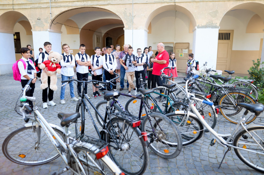 Míg a diákok átvették a kerékpárokat és a táskák tartalmát nézegették, Logojda Tímeával, az iskola korábbi magyartanárával, a nagyszőlősi Urunk Mennybemenetele Plébánia munkatársával beszélgettünk.