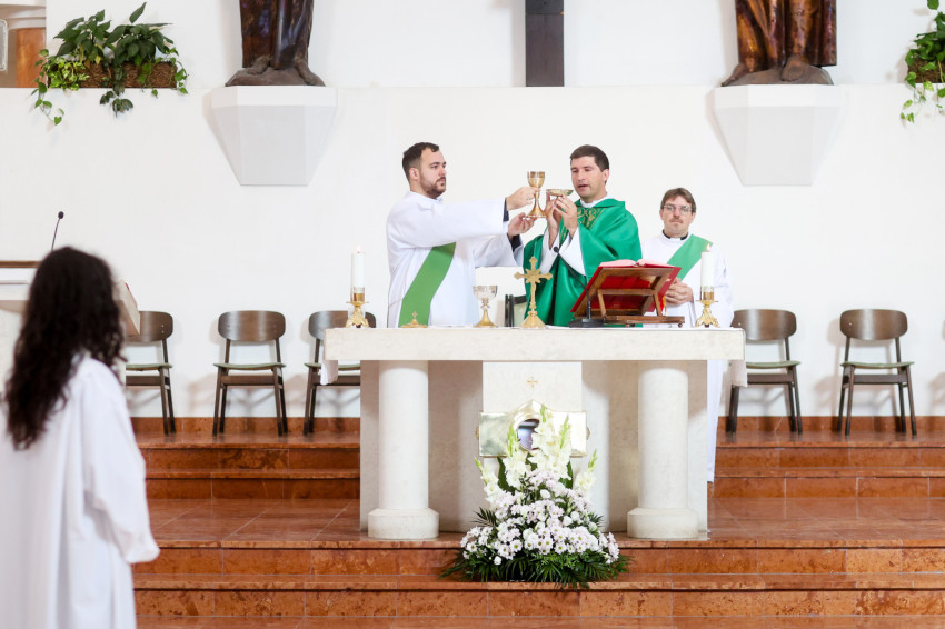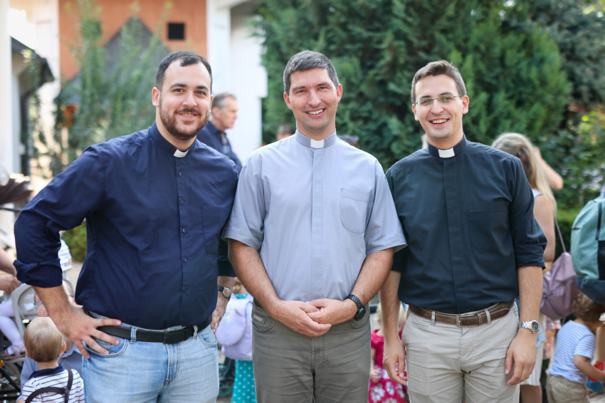 Kelemen Imre három éve, 2020 óta plébános itt, Riesz Domonkos második éve káplán. „Remek papi csapatban lehetek – mondja Piukovics Dániel. – Mindhárman törekszünk az egységre. Rendszeresen együtt étkezünk, sokat beszélgetünk, közösen imádkozunk. Fontos, hogy lelki közösségben legyünk egymással, ez alapoz meg mindent.” Igyekeznek a környék papjaival is összefogni: néhányan közös reggelire és imára, beszélgetésre is össze szoktak jönni, s az espereskerületben régóta szokás ellátogatni egymás búcsúi szentmiséire.