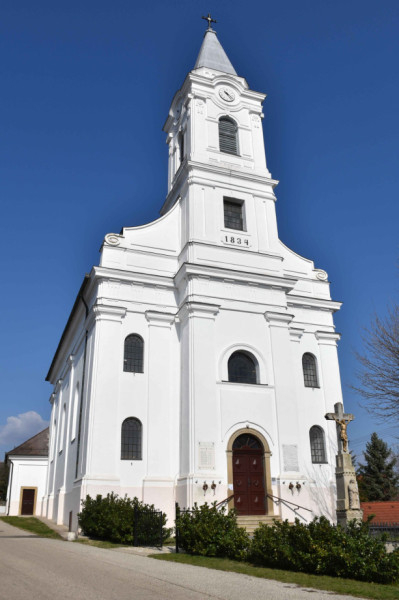 A templom 1832–1834 között épült, ennek – és az építtető tihanyi bencés apátságnak – emlékét őrizte meg a karzat mellvédjén található kronosztikon is: fILIaLIs abbatIa tIhan In honoreM / sanCtI LaDIsLaI eXtrVXerat (1834).