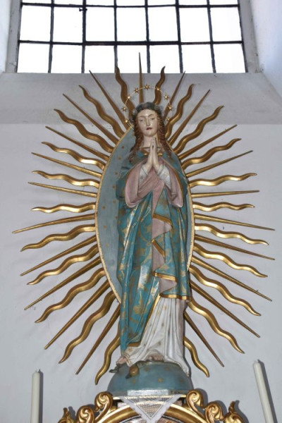 Később a templom további berendezéssel gyarapodott. Az Immaculata-szobor az 1890-es évek közepén készült, a Stuffleser-cég szignójával ellátva. Ezzel, illetve az alatta lévő historizáló mellékoltárral (1883) átellenben áll a Jézus Szíve-mellékoltár (1916), amely a Rétai és Benedek cég munkája.