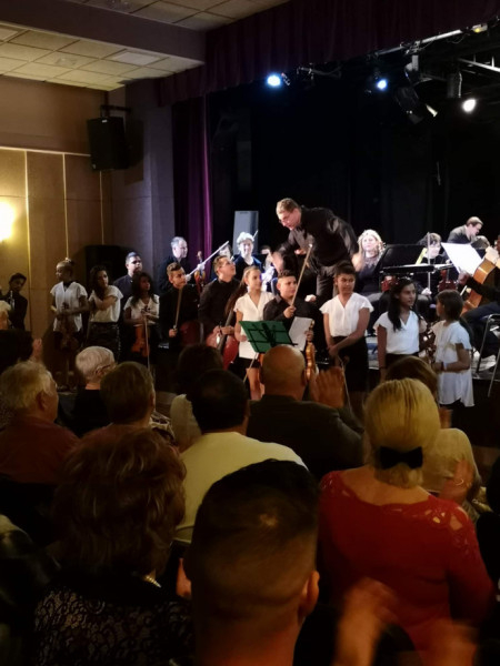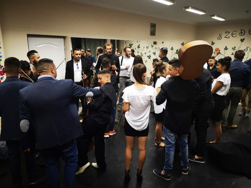 A programvezető azt is elmondta, hogy a koncertet megelőző hetekben rendszeresen látogatták az Egri Szimfonikus Zenekar próbáit, melynek során a művészek közelebbről is megismerhették a gyerekeket és a programot. „A zenekar és a művészek támogatják a máltais Szimfónia küldetését, ezért tűzték műsorukra a két közös művet. Ez a koncert volt a Cigányos a szvitem ősbemutatója. Péntek Tamás továbbra is dolgozik a mű nagy szimfonikus zenekari hangszerelésén.”