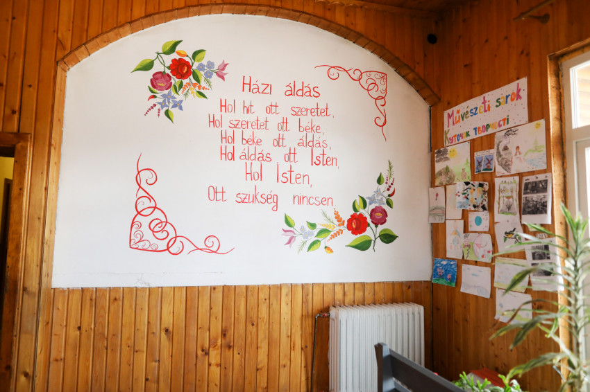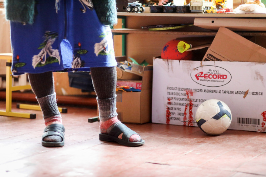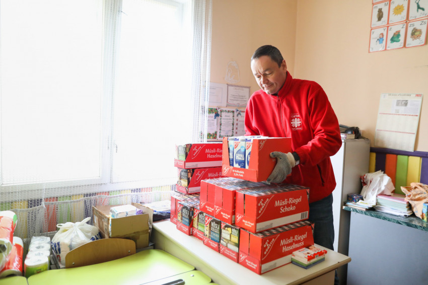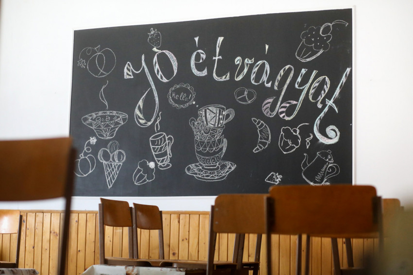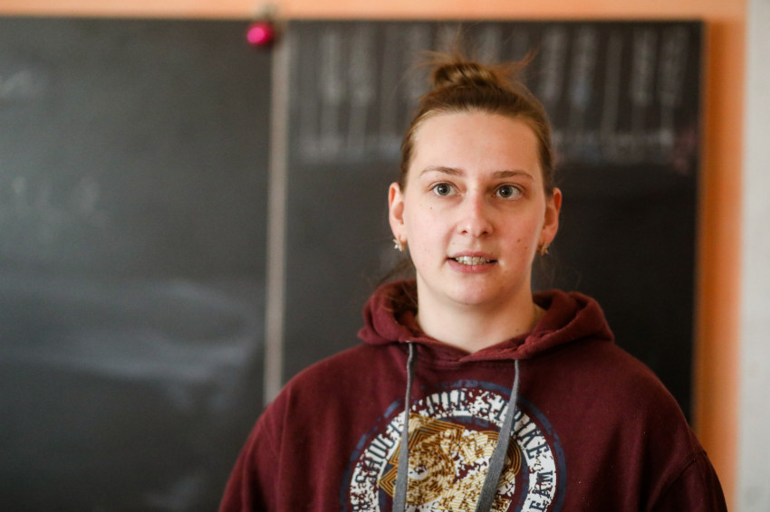 Első utunk a magyar tannyelvű iskolához vezet, ahol Kolesznyikova Mária, az egyik tanítónő fogad minket. Online oktatás van, így az épület a karitász adományainak raktáraként működik, innen látják el a település rászorulóit.