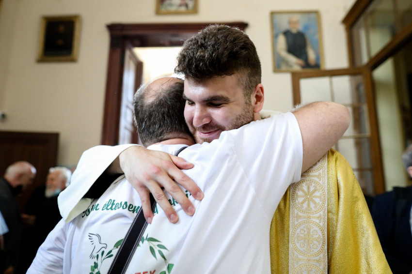A bíboros békecsókot váltott minden újonnan felszentelt áldozópappal, majd a püspökök, kanonokok, jelen lévő papok köszöntötték őket, akik életüket most Jézusnak és a testvéreik üdvösségére adták.