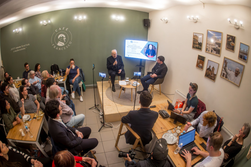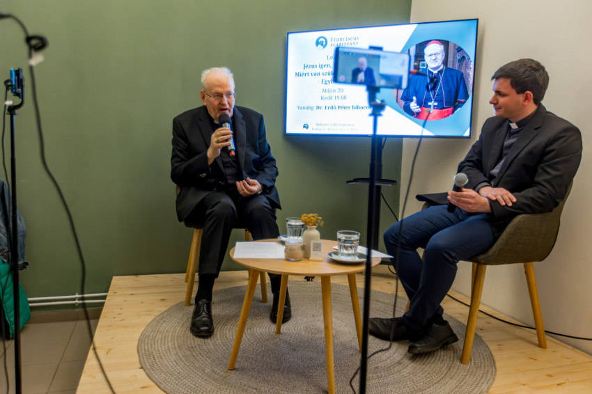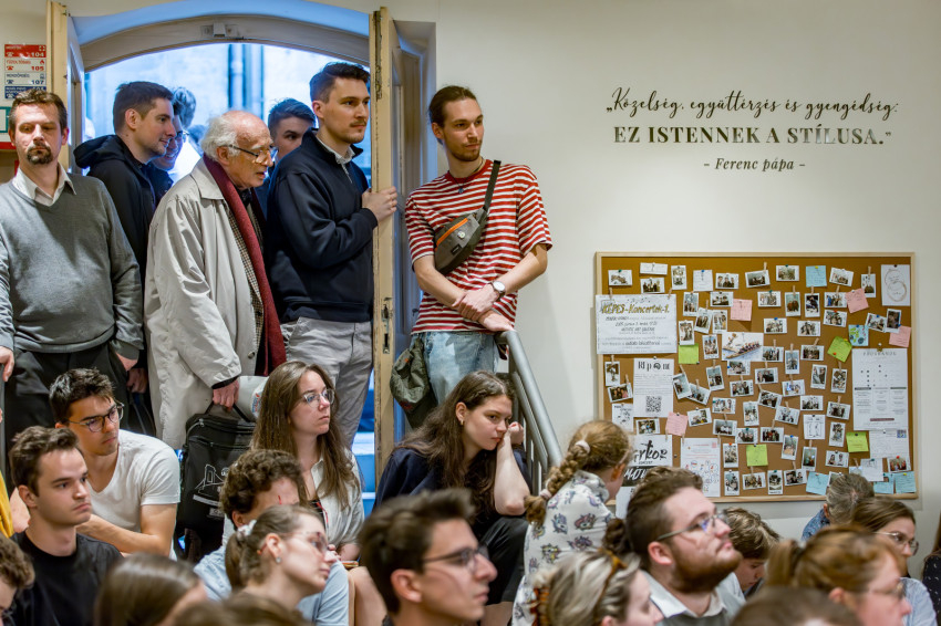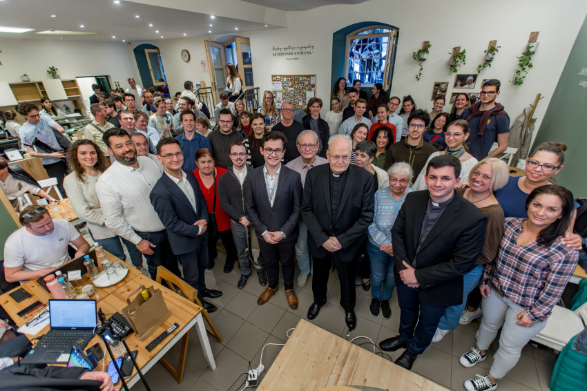 A közelmúlt egyházi történéseinek követése, megértésének igénye miatt jött el a nagyszámú érdeklődő, főként fiatalok, hogy meghallgassák azt, aki ezeket személyesen követte: Erdő Péter bíboros megosztotta, milyen élményeket őriz a húsvéthétfőn elhunyt Szentatyáról, hogyan élte meg a vatikáni eseményeket, mit üzennek mindezek számára a jövőt tekintve.