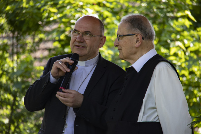 Dobszay Benedek és Brückner Ákos Előd OCist köszöntötték az ünnepelteket. Megköszönték Marton Zsolt püspök – aki tizenöt éve aktív résztvevője a szervező stábnak – huszonöt éves papi szolgálatát. A váci megyéspüspök elmondta, 2007-ben Ákos atya által került az előadók közé, majd a stábba. „Lelki házigazdaként a szívemben hordozlak titeket, fontosak vagytok” – hangsúlyozta. A nap folyamán Dobszay Benedek köszöntötte azt az atyát is, akinél elsőáldozó volt, és aki később a technikusi háttérben zajló szolgálatokba beavatta: az aranymisés Kemenes Gábort.