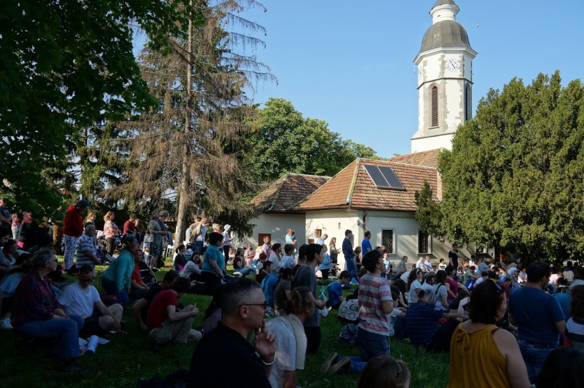 A záró áldás és Mária-ének után christian partyt tartottak a templomkertben.