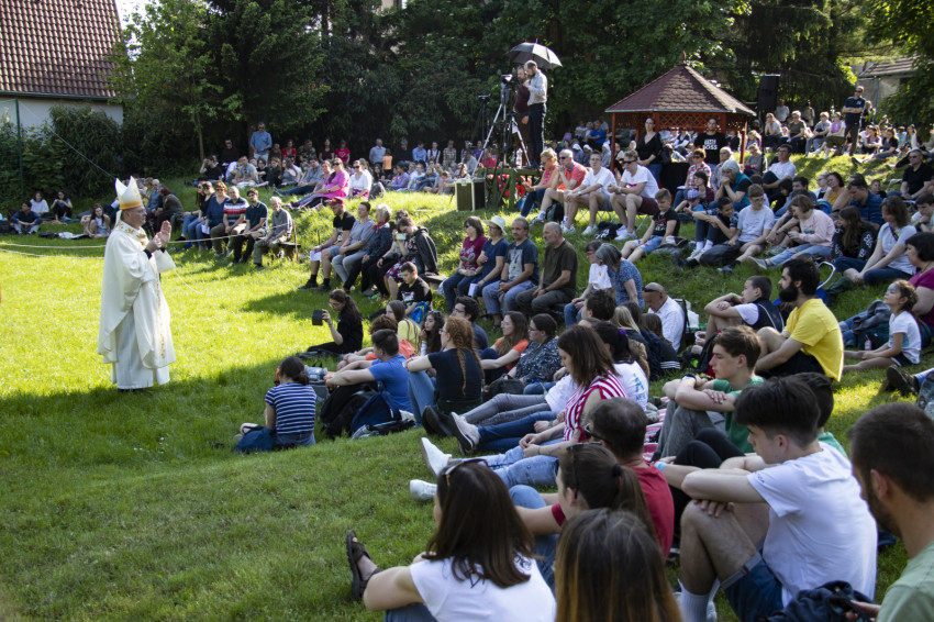 Beszéde végén arra hívott, mint ahogy a tanítványok felfelé tekintettek a mennybemenetel után, figyeljünk mi is felfelé. Kapcsolódásra lettünk hívva, de ma mégis sokszor azt tapasztaljuk, ha beállunk egy csapatba, az elválaszt másoktól. „Meg lesztek hívva ezer zászló alá, ügyeket kell képviselnetek, keresztényként is megmondják, hova állj. De figyelj Krisztusra, mindig halld meg, ő mire hív: ha két út van, ő lehet, hogy egy harmadikra hív” – figyelmeztetett.