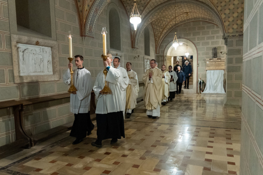 A szentmise után a papok és az asszisztencia kíséretében a hívek az altemplomon keresztül a püspöki kriptába vonultak, ahol rövid imádsággal fohászkodtak a Pécsi Egyházmegye elhunyt főpásztoraiért.