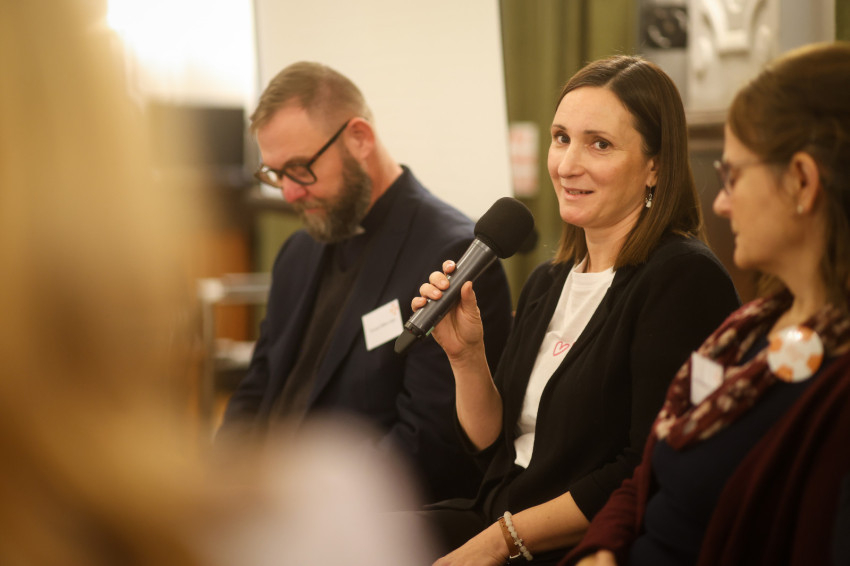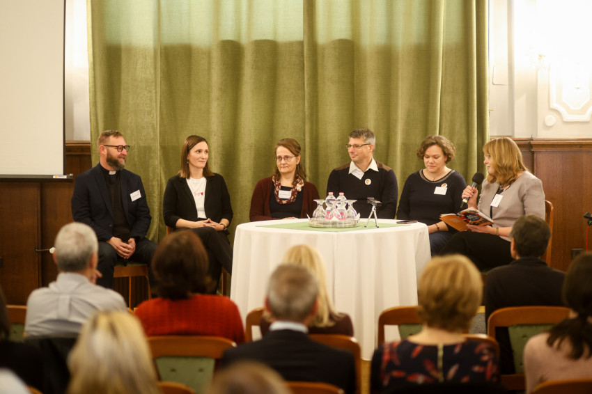 Steinbach Éva nyolcgyermekes édesanya, Varga Tamás és Katalin nagycsaládos szülők, Jana Beránková, az Édesanyák Imája mozgalom koordinátora és Barna Tímea, a Katolikus Szeretetszolgálat országos Papi otthonának intézményvezetője a sérült gyermekekről, veszteségről, gyászról, az élet végéről, szeretteink elengedéséről beszélgettek Keresztes Ilona moderálásával. Szívszorító személyes történeteiken keresztül láthatóvá vált a támogató közösség szerepe, és hogy a nehézségekből is gazdagodtak, még egy Down-szindrómás vagy beteg gyermek gondozásából és elvesztéséből is.