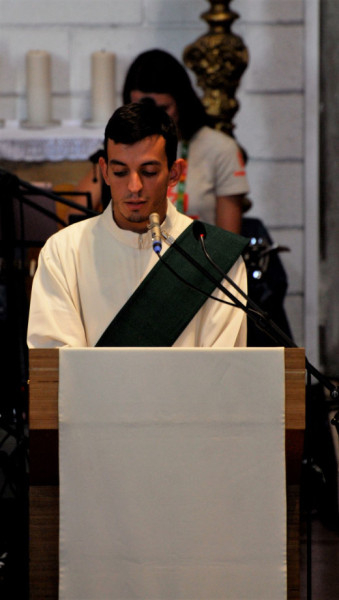 A katekézis előtt egy fiatal mély, őszinte tanúságtétele hangzott el az előző este tapasztalt élményéről. Elmondta, hogy milyen nagy hatással volt rá annak megélése, hogy a várakozó vonaton a közös imádság és csönd mennyire össze tudta fogni a különböző nemzetek fiataljait.