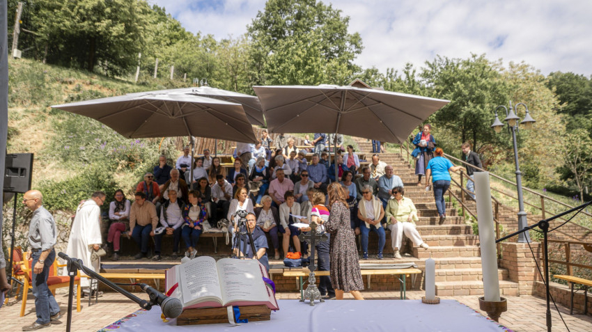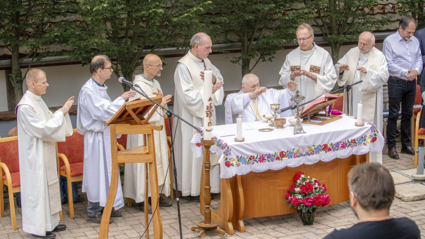 Ezt követően az Életrendezés Háza szabadtéri misézőhelyénél koncelebrált ünnepi szentmisét mutatott be Bíró László püspök.