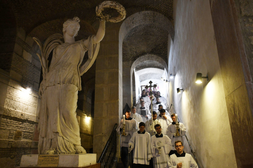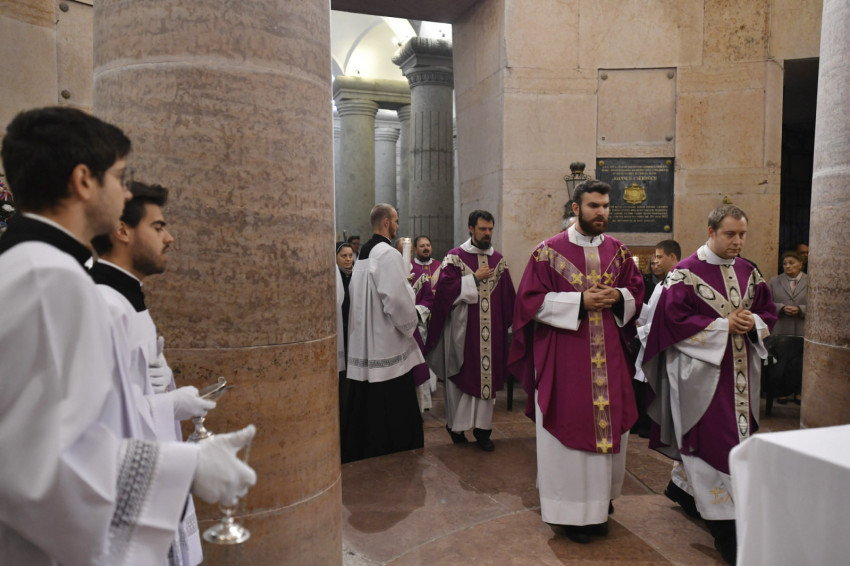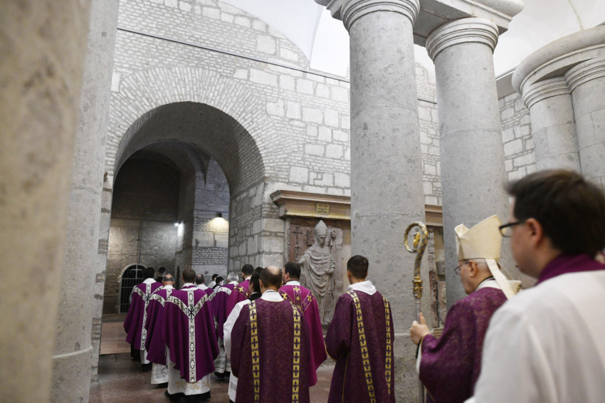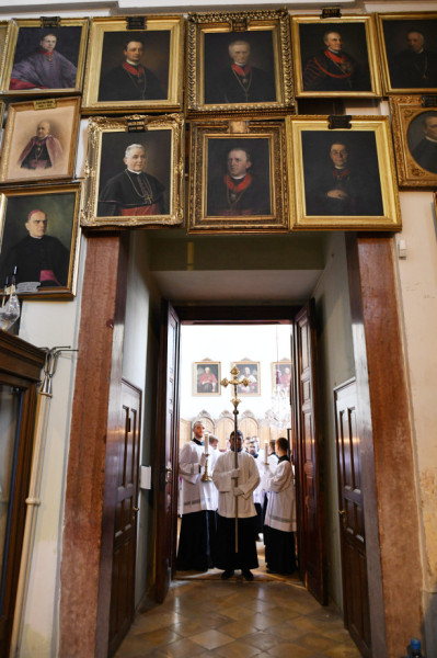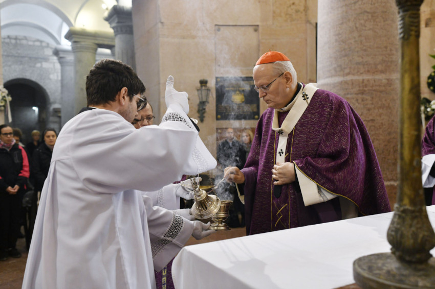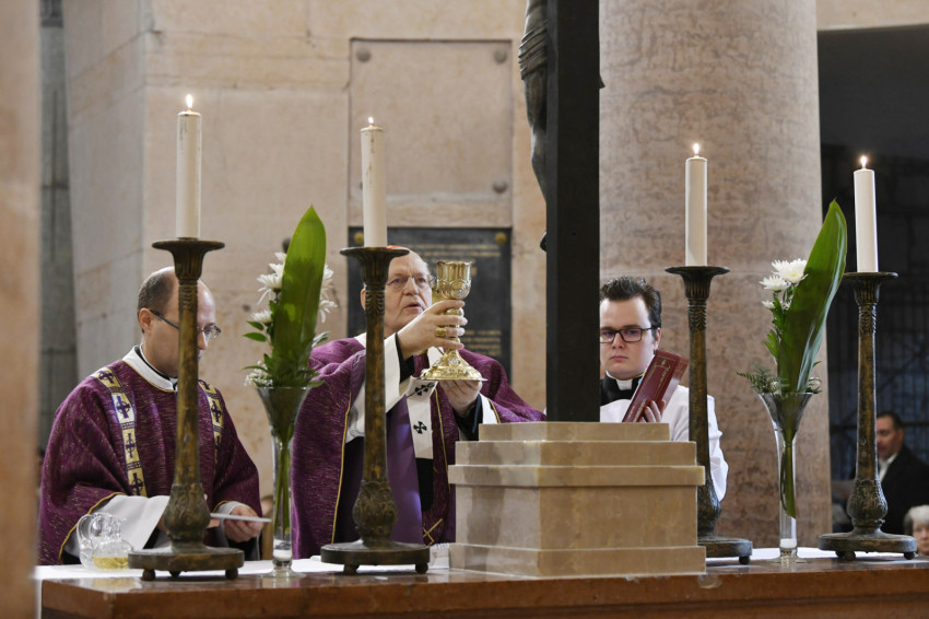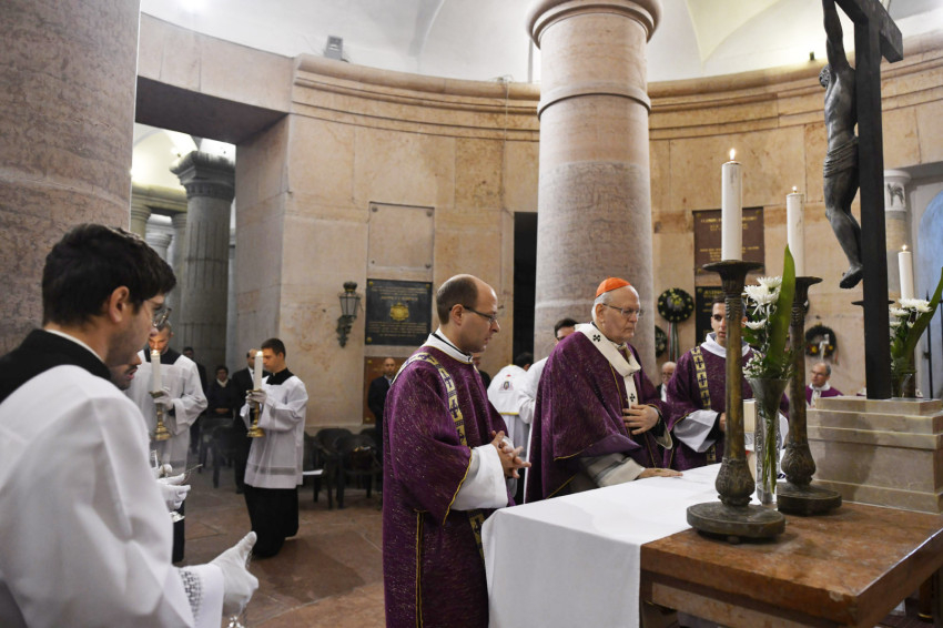 A liturgia végén a bíboros és az asszisztencia gyertyát gyújtott a főegyházmegye elhunyt főpásztorainak sírjainál.