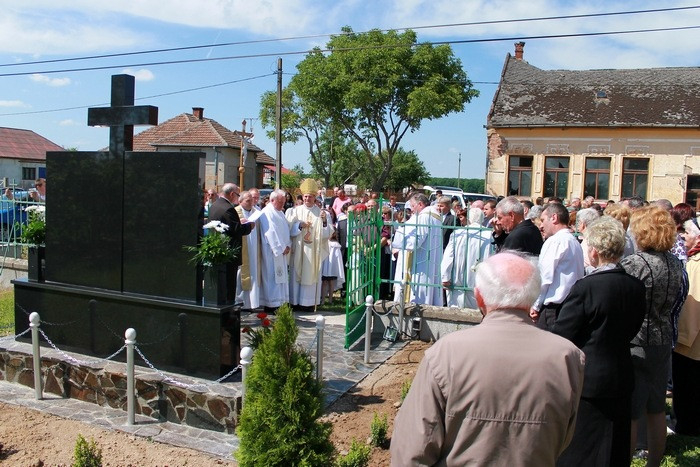 A szentmise végén Bíró Norbert plébános virággal köszöntötte a még élő és az emlékezésen jelen levő három, deportálást megélt falubelit, majd a templom elé vonultak, ahol Schönberger Jenő püspök megáldotta a neveket is tartalmazó emlékművet. Ezt a falubeliek később megkoszorúzták, hosszan elidőztek előtte.