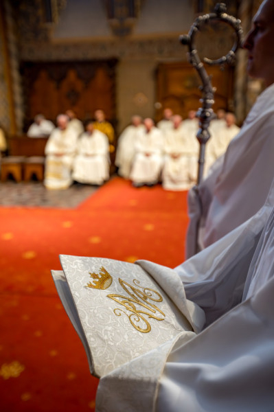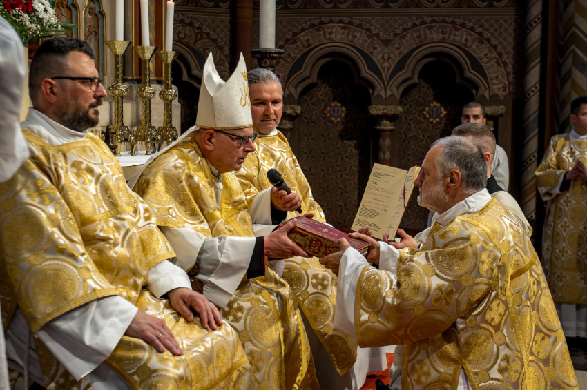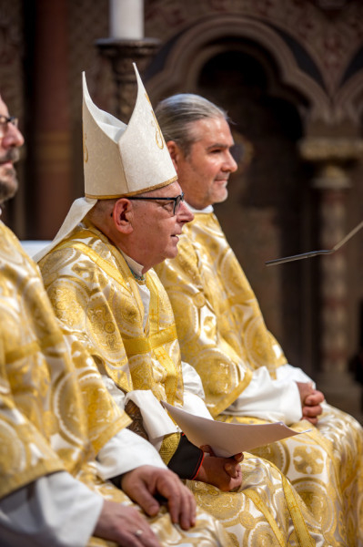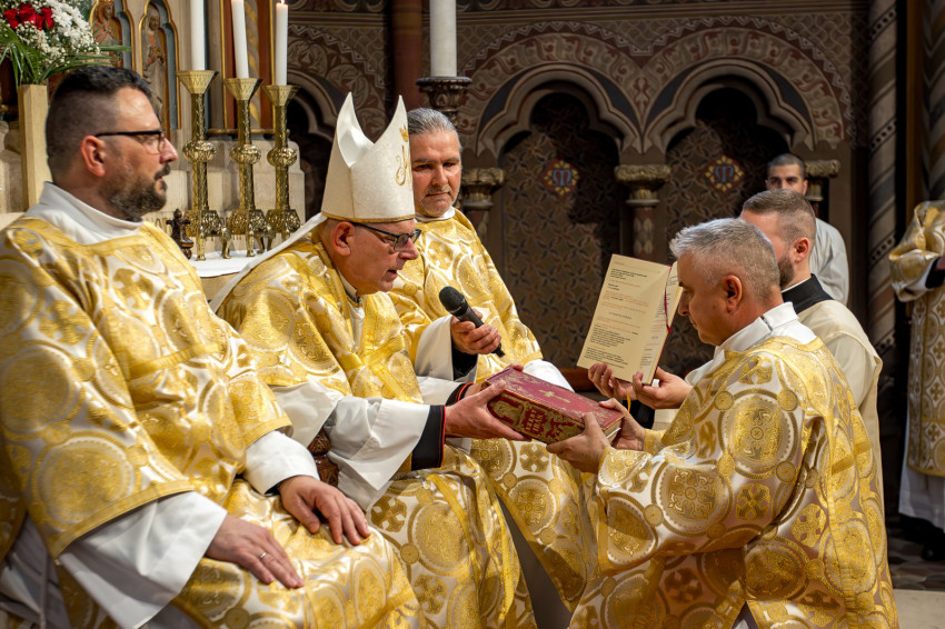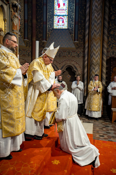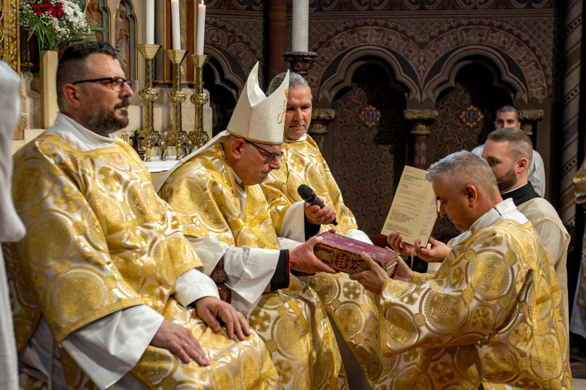 Ezt követően az újonnan szentelt diakónusok beöltöztek rendi ruhájukba: arany színű, átlósan viselt stólát és arany dalmatikát adtak rájuk. A püspök e szavakkal, egyesével áldotta meg őket: „Vedd Krisztus evangéliumát, amelynek hirdetője lettél. Ügyelj arra, hogy amit olvasol hidd, amit hiszel, tanítsd és amit tanítasz, kövesd is.”
