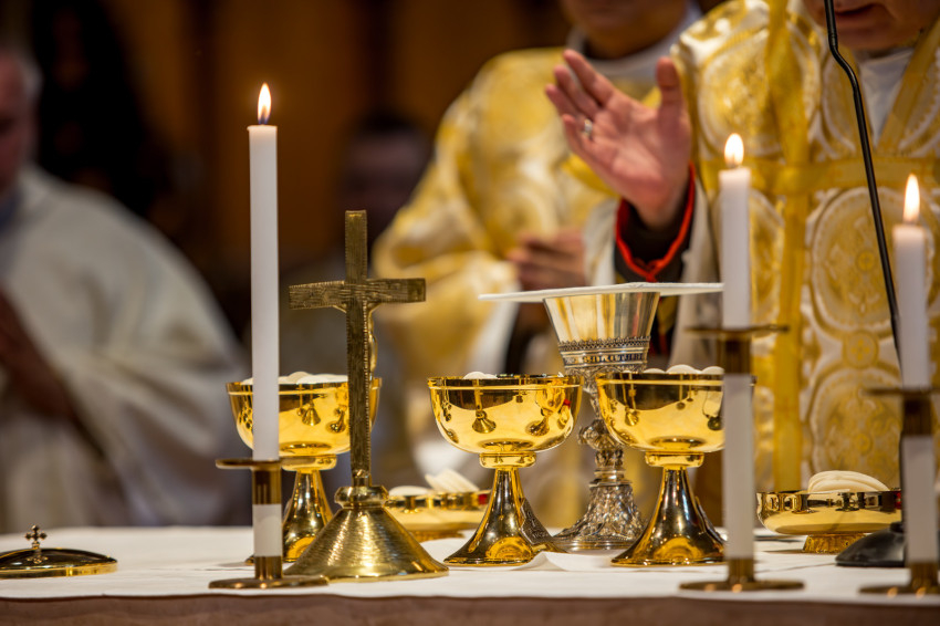 Majd a jelenlévő többi diakónussal együtt a béke jelével köszöntötte őket, átnyújtotta nekik az evangéliumos könyvet és ők előkészítették az oltárt – a szentmise a felajánlással folytatódott.