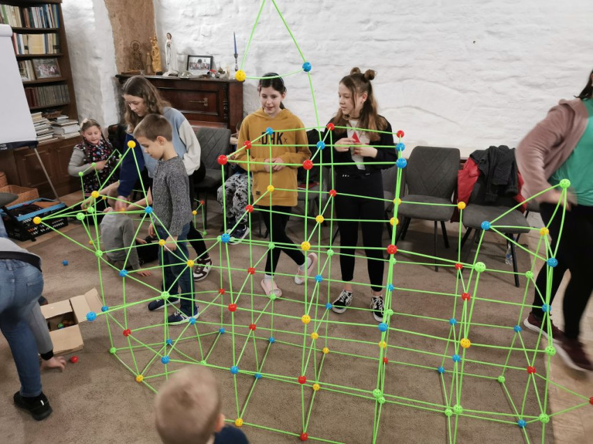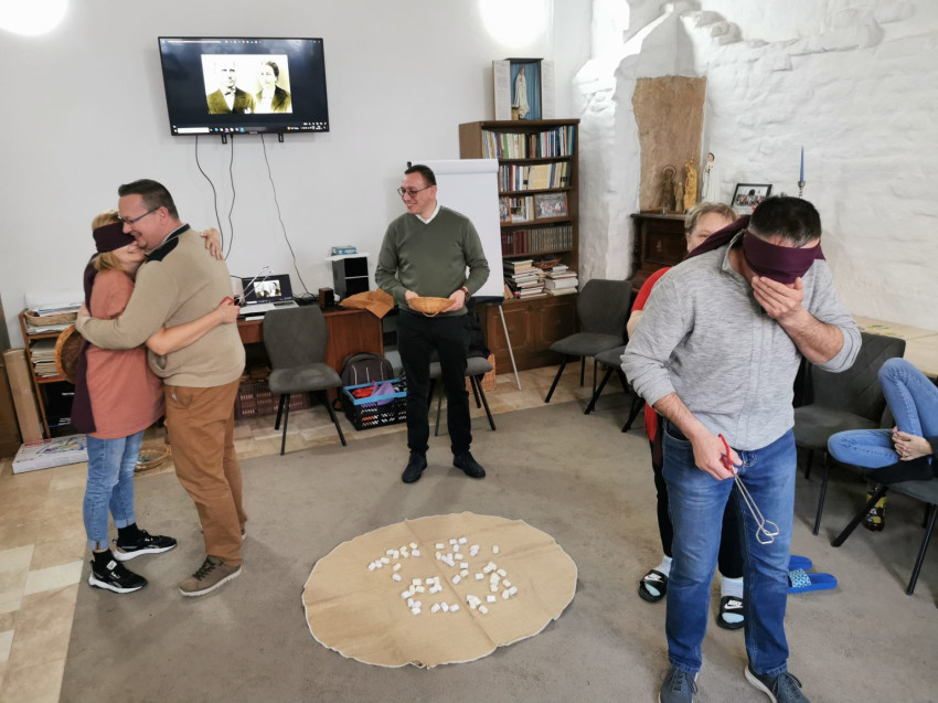 A lelkigyakorlat elmélkedései közben megszokottnak semmiképpen nem mondható feladatokat oldottak meg a résztvevő házaspárok: sütőkesztyűben csokitojást „pucoltak”, jelképezve, hogy hogyan tudják a házastársak segíteni egymást a hétköznapi feladatokban, és bekötött szemmel, konyhai fogócsipesszel pillecukrot is gyűjtöttek és közben megtanulták, mennyire figyelnünk kell a házastársunk hangjára, ha nem akarunk elveszni a mindenfelől bennünket érő többi zajban. Az élet sokszor viharos tengerén egy hajóban evező családos közösség számára megerősítő volt együtt hajót építeni, közösen imádkozni, szentmisén részt venni, és természetesen a gyermekek vidám közössége is erősödött a közös játék, zsoltártanulás és beszélgetések során.